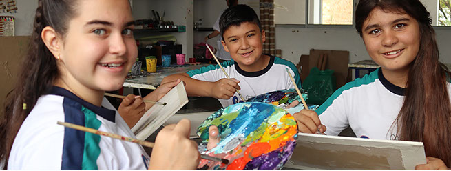 ° El área de Bellas Artes propone como componentes formativos el Ser, Hacer, Poder y Saber a través de la vivencia artística, buscando desarrollar en nuestro estudiantes competencias ciudadanas, habilidades mentales, emocionales y de aprendizaje, enfocándonos en la formación del reconocimiento de sí y del otro, a través de experiencias mediadas por los valores como el amor, la comprensión, la lealtad y la humildad.